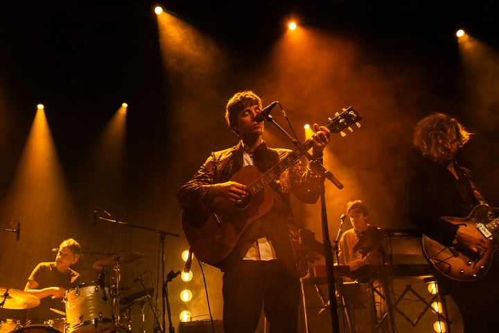 Om negen uur kwam de band het, voor deze gelegenheid, wat krappe podium op in de Maastrichtse poptempel waar men inmiddels gewend is geraakt aan optredens van Belgische topbands. Bert Ostyn en de zijnen trapten af met ‘In the Shade’ een knap popliedje van het nieuwste album. Niet perse een knallende live-opening hetgeen de verwachting voedde dat we vanavond langzaam maar zeker naar een kookpunt gevoerd zouden worden, gelijk kikkers in een langzaam opwarmend rechaud. Dit om zeker te stellen dat er geen ontsnapping mogelijk zou zijn voor het publiek.
